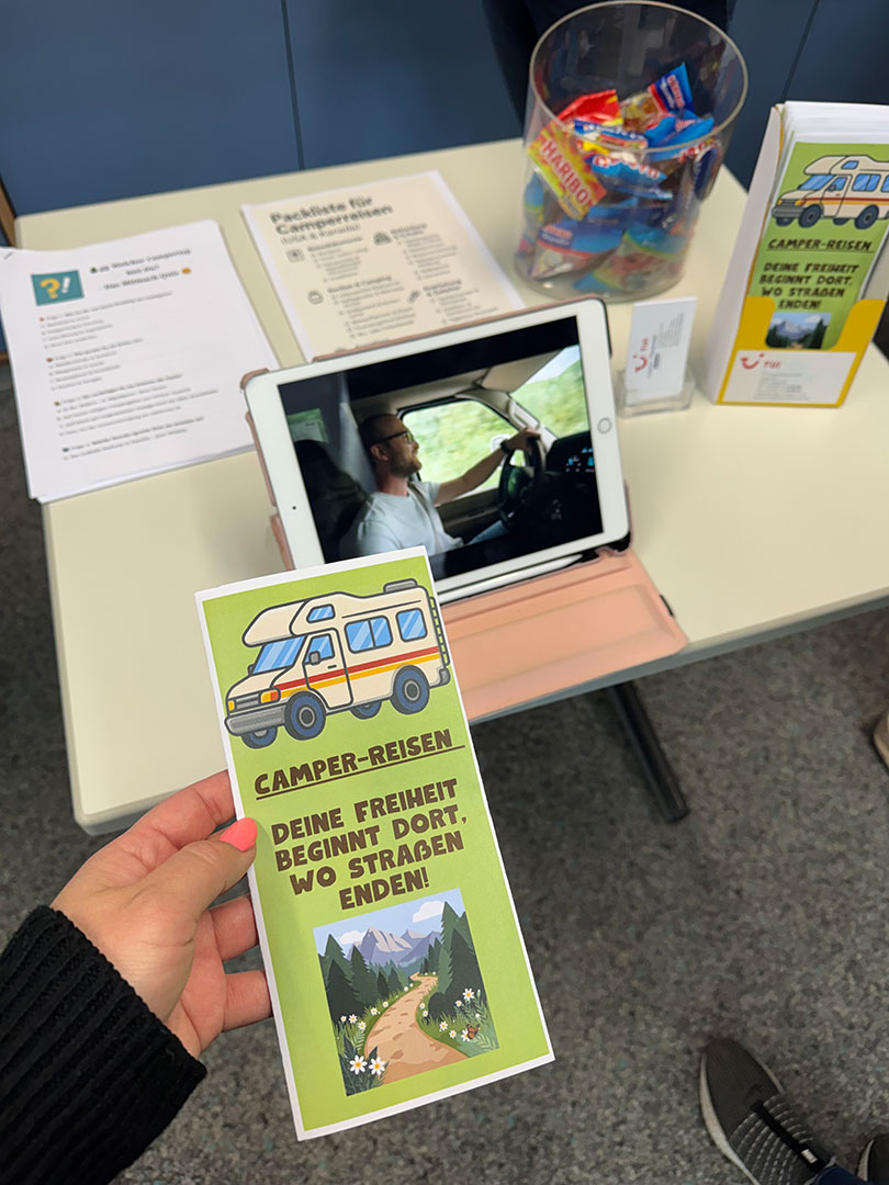 In Einzelarbeit erarbeiteten die Schüler:innen zuvor eigenständig spannende Themen nach Wunsch aus der Welt des Reisens. Die Bandbreite reichte von nachhaltigen Reiseformen und innovativen Mobilitätskonzepten über beeindruckende Naturphänomene bis hin zu beliebten und weniger bekannten Reisezielen weltweit. Ziel war es dabei nicht nur, fundiertes Wissen aufzubauen, sondern dieses auch adressatengerecht und anschaulich aufzubereiten.