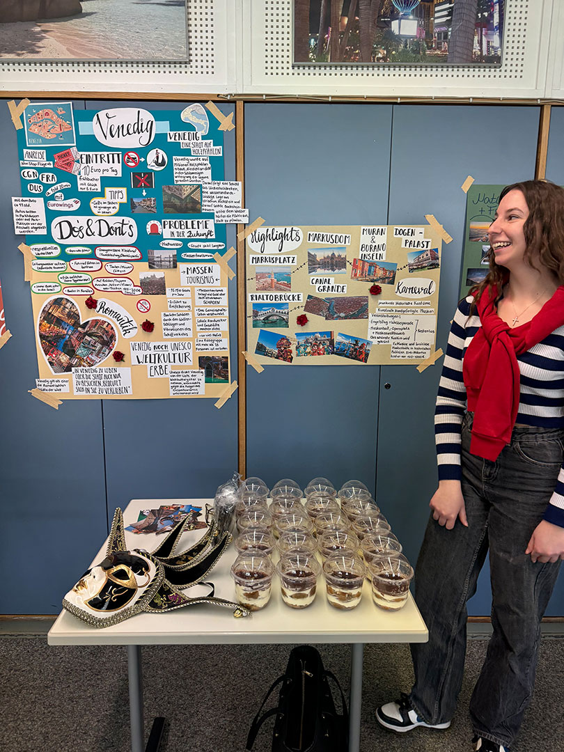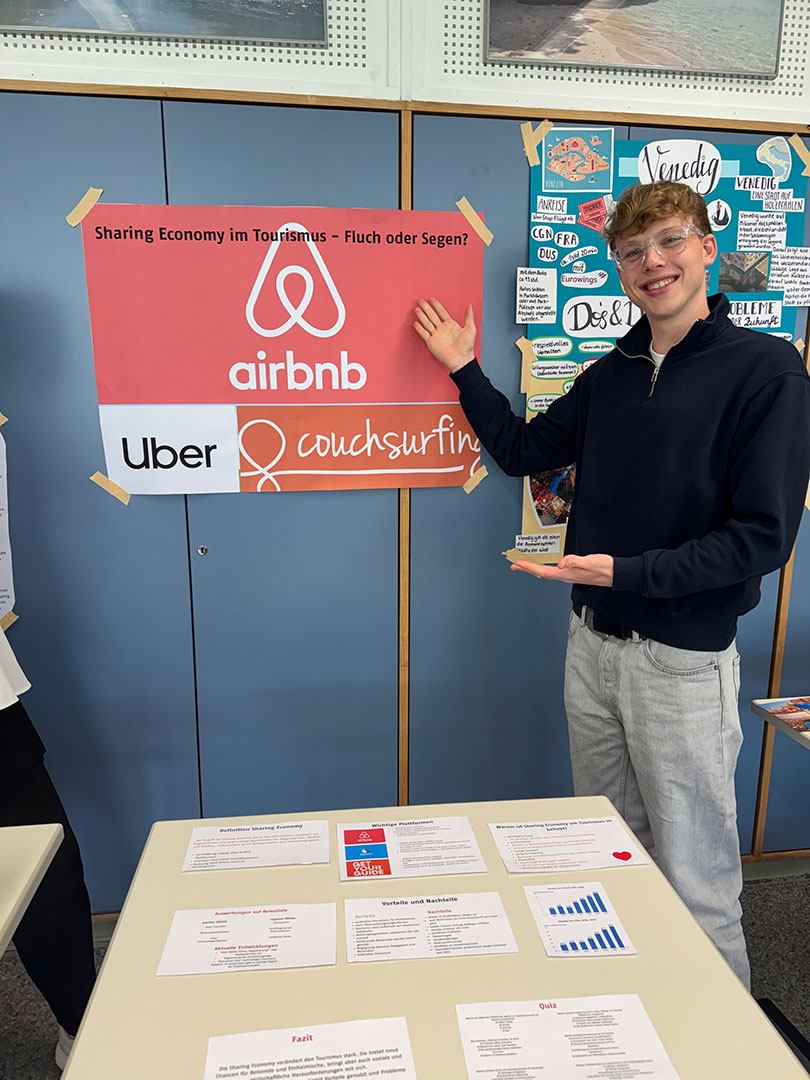 Der „Markt der Möglichkeiten“ bot somit eine ideale Gelegenheit, selbstständiges Arbeiten, Kreativität und Präsentationskompetenz miteinander zu verbinden. Gleichzeitig erhielten die Schüler:innen spannende praxisnahe Einblicke in die Vielfalt touristischer Themen und konnten voneinander lernen.